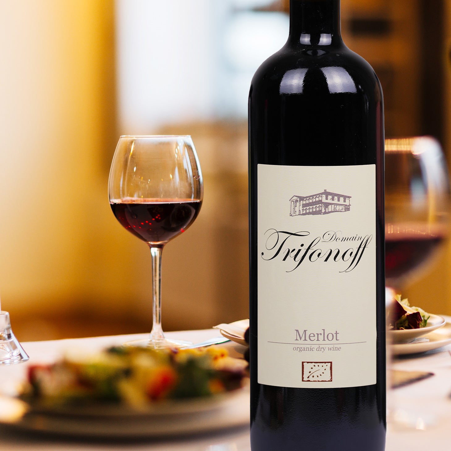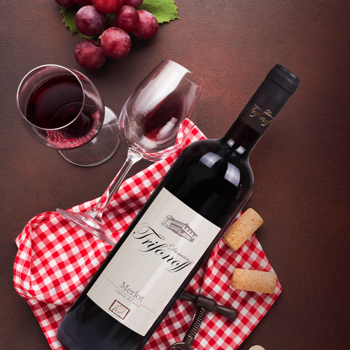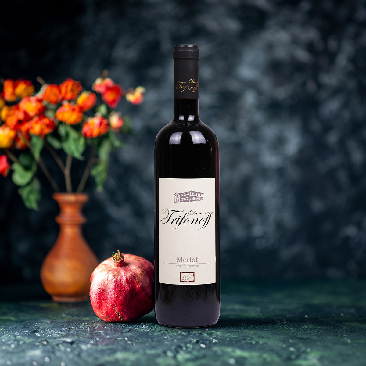 Bio-Wein, gewonnen aus speziell ausgewählten Partien von handverlesenen Bio-Merlot-Trauben aus Bulgarien.